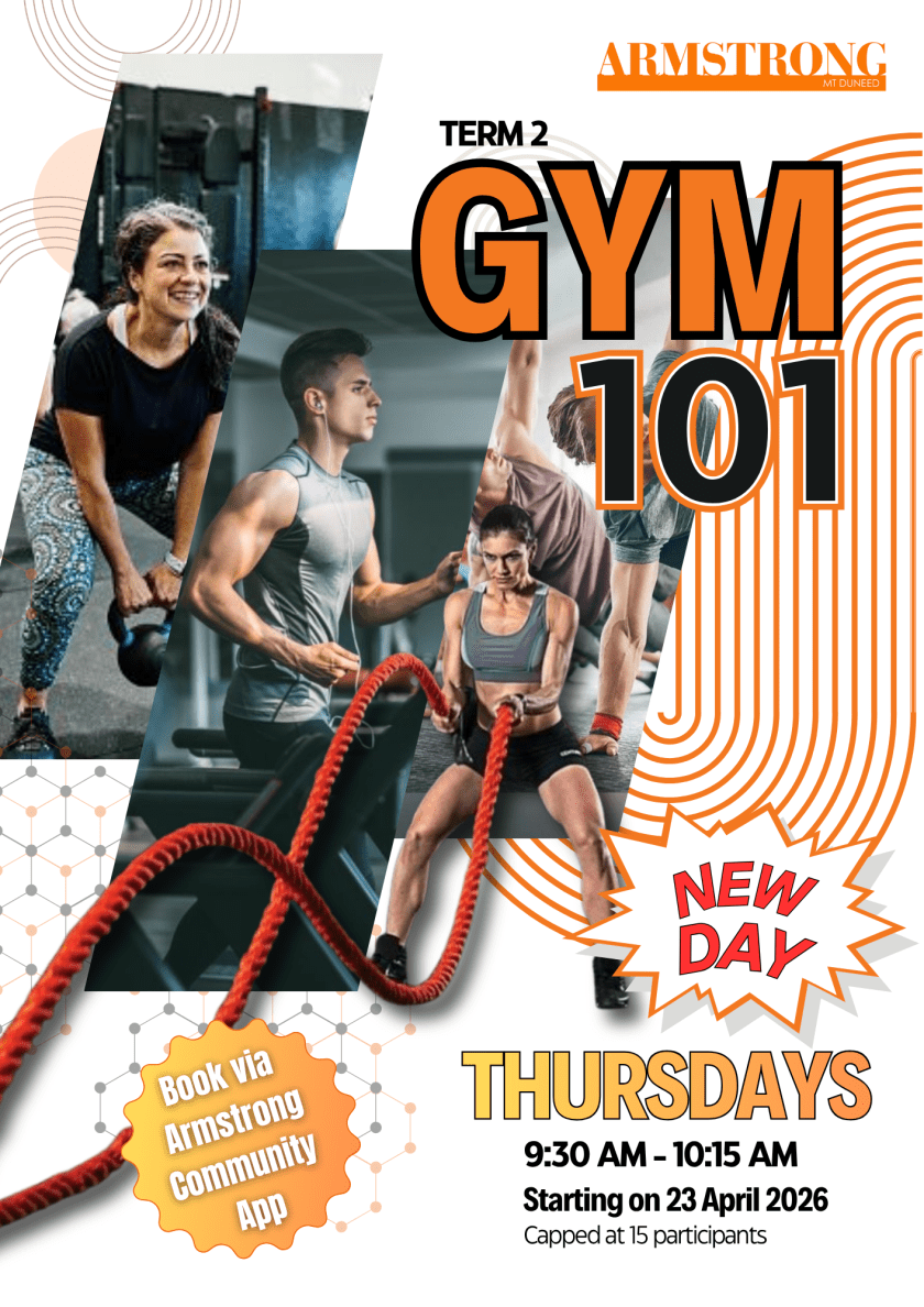PN: Gym 101 now on Thursdays! Starts 23 Apr, 9:30 AM! Build strength and confidence. Ages 16+. Book via the Armstrong Community App!